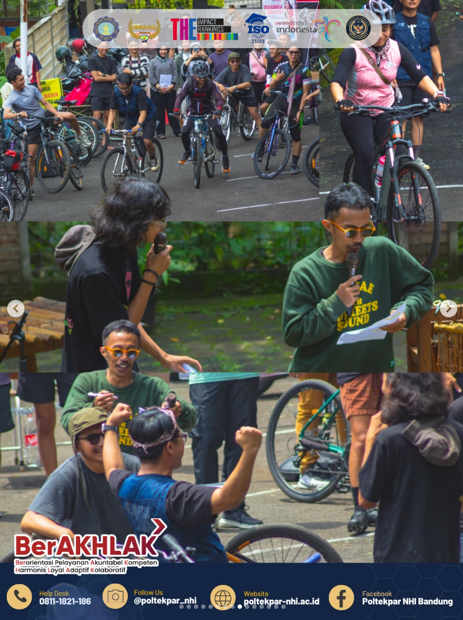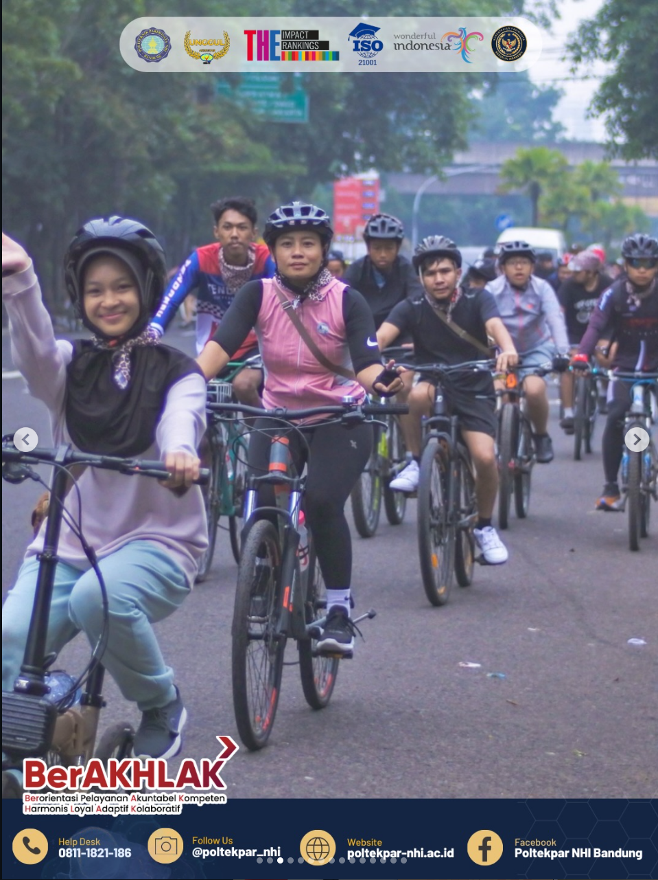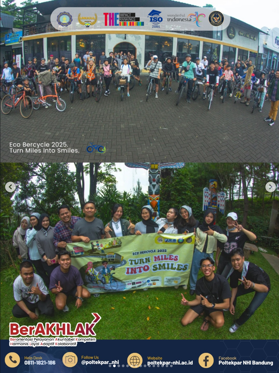 Mahasiswa Program Studi Pengelolaan Usaha Rekreasi (PUR) Semester 5 Poltekpar NHI Bandung menyelenggarakan kegiatan ECO BERCYCLE 2025: Mindful Miles, sebuah event bersepeda bertema “Turn Miles into Smiles”. Kegiatan ini menjadi ruang bagi generasi muda untuk bergerak aktif, merayakan gaya hidup sehat, serta berkontribusi nyata bagi lingkungan dan masyarakat.