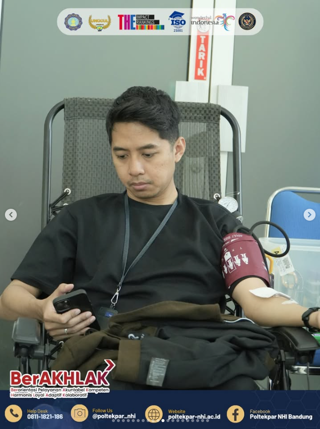 Bertempat di kampus Poltekpar NHI Bandung, kegiatan donor darah ini mendapat antusiasme tinggi dari berbagai kalangan, termasuk mahasiswa, dosen, staf, alumni, serta masyarakat umum yang turut berpartisipasi dalam aksi kemanusiaan ini. Semangat gotong royong dan rasa kebersamaan begitu terasa, mencerminkan nilai-nilai kepedulian yang selalu dijunjung tinggi oleh keluarga besar Poltekpar NHI Bandung.