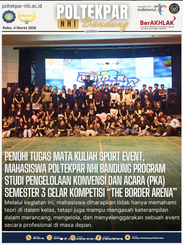 Kegiatan ini diselenggarakan di Graha I Gede Ardika, Poltekpar NHI Bandung, dengan partisipasi dari 6 program studi yang turut meramaikan jalannya kompetisi.