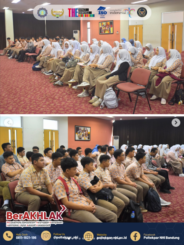 Interaksi aktif antara narasumber dan siswa juga menjadi bagian penting dalam sesi ini, di mana para peserta diberikan kesempatan untuk bertanya secara langsung, sehingga memperoleh pemahaman yang lebih jelas dan menyeluruh mengenai proses menjadi mahasiswa Poltekpar NHI Bandung.