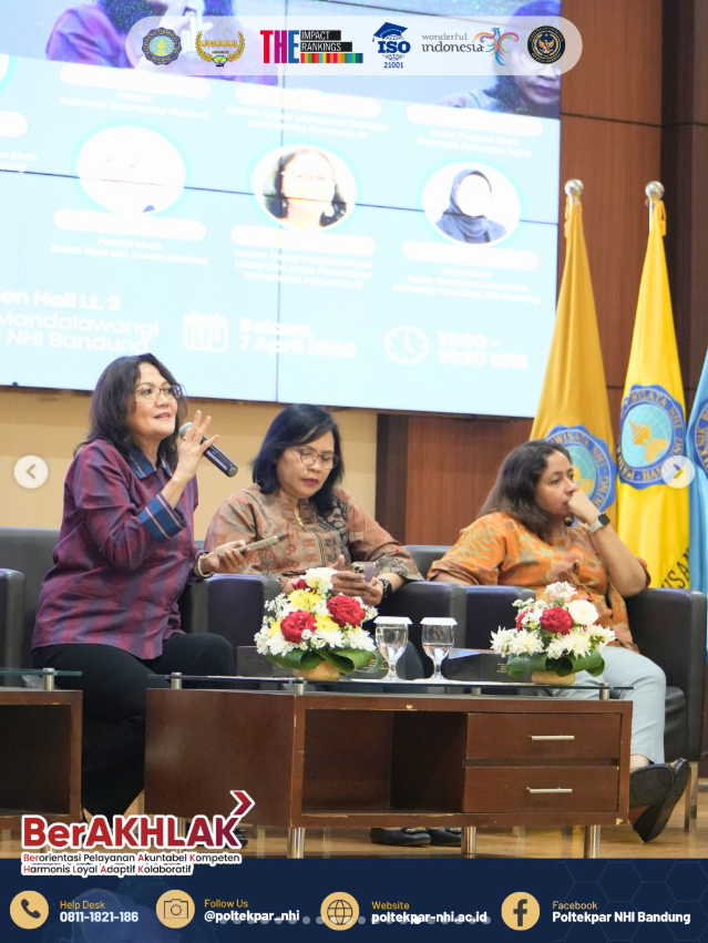 Politeknik Pariwisata NHI Bandung melalui Unit Kajian Gastronomi Indonesia (KGI) sukses menyelenggarakan talkshow bertema Peran Perempuan dalam Strategi Pengembangan Wisata Gastronomi sebagai bagian dari upaya memperkuat ekosistem pariwisata nasional yang inklusif dan berkelanjutan.